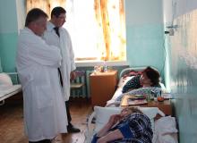 В Балейский район выехали первый заместитель министра здравоохранения Забайкальского края Иван Шовдра, он осмотрел отделения ЦРБ, пообщался с докторами, средним и младшим медицинским персоналом, административным звеном и, конечно, с пациентами. Позже состоялась встреча с коллективом больницы, участие в ней приняло руководство района и куратор его Балейской ЦРБ, главный врач Забайкальского краевого клинического фтизиопульмонологического центра Павел Фадеев.