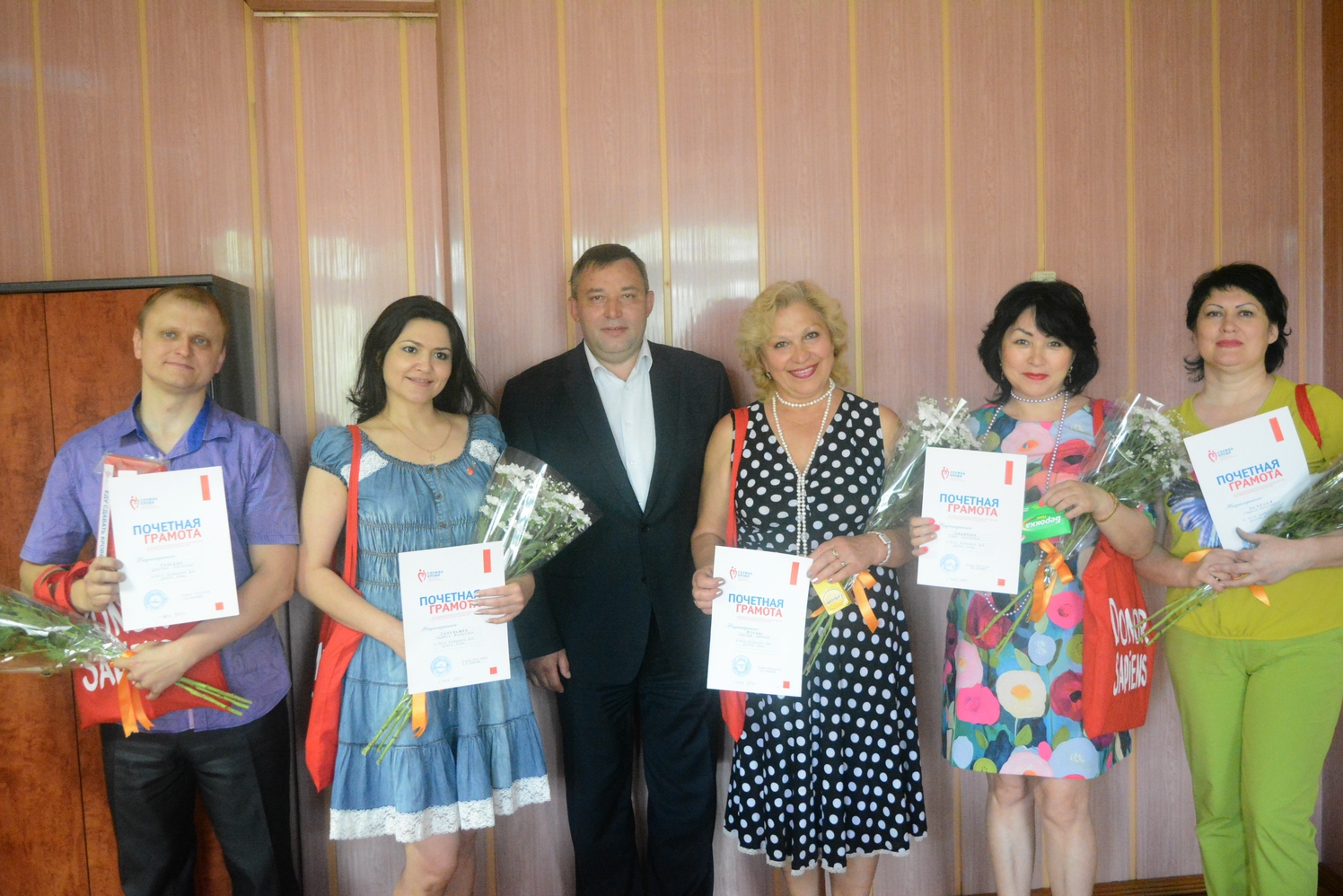 Пятерым Почетным донорам сегодня вручили подарки и грамоты. Благодарим аптечную сеть «Флория» за предоставленные витаминно-минеральные комплексы, а также сеть салонов цветов «Оазис» за букеты.