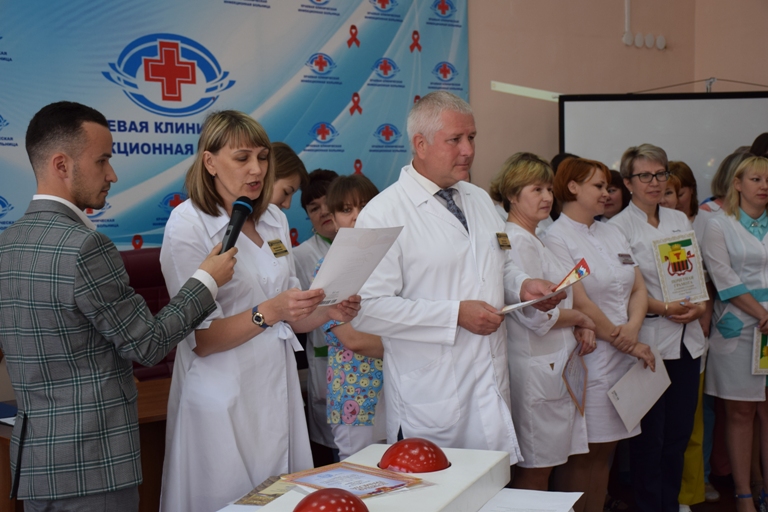 В этот день поздравления получили не только доктора, медсестры и фельдшеры, но и лаборанты, санитары, сантехники, кладовщики, охранники - все, кто имеет непосредственное отношение к лечебному процессу. Лучшим сотрудникам были вручены почетные грамоты от руководства краевой клинической инфекционной больницы.