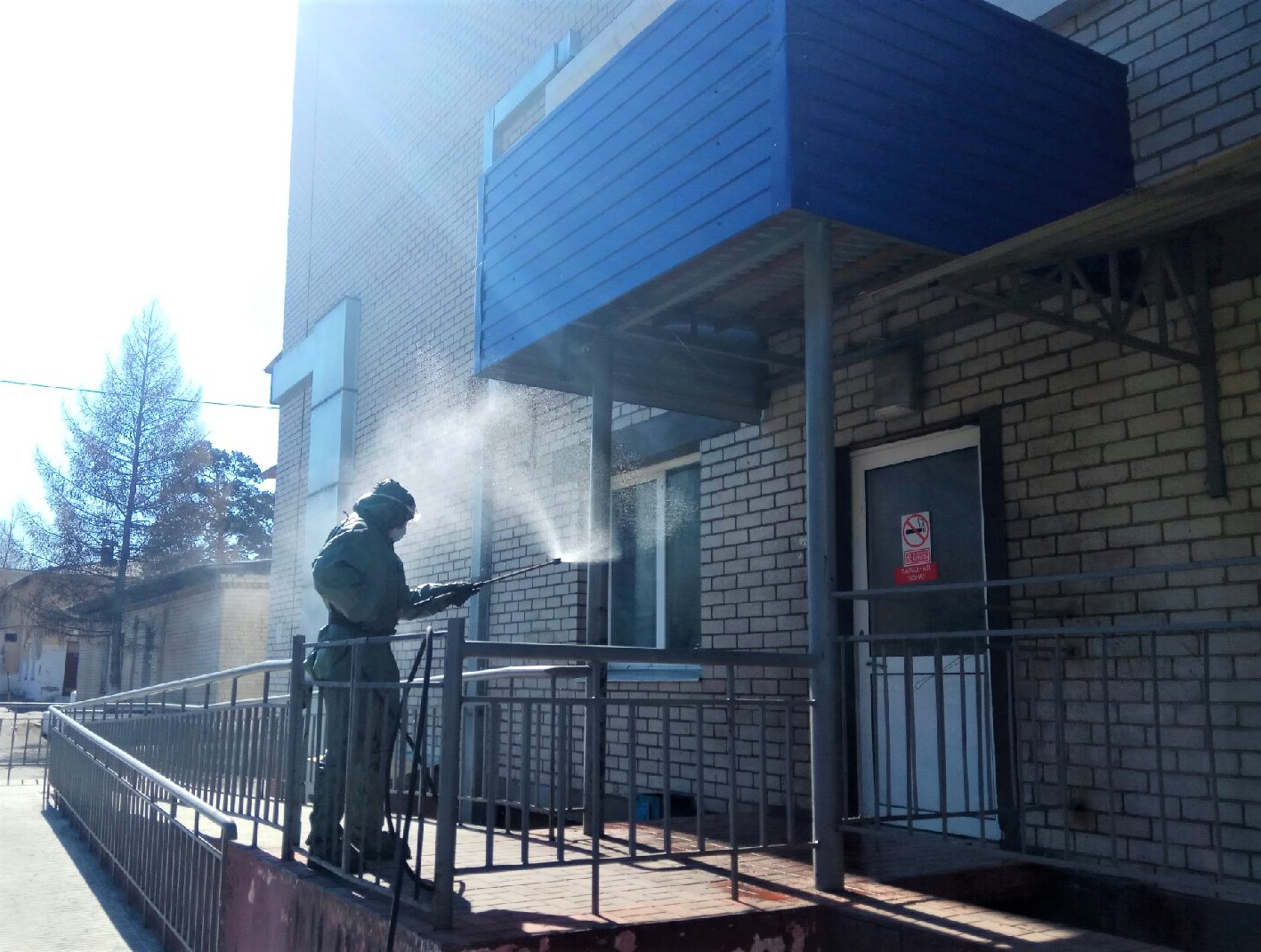 По словам главного врача больницы Федора Чепцова, дезинфекция территории проводится силами военных – бригадой радиационной, химической и биологической защиты - дважды в неделю, по вторникам и пятницам. В составе раствора входит гипохлорит кальция. Распыляется он на подъездные пути, двери, пандусы, что позволят снизить риски переноса инфекции за огражденную территорию.