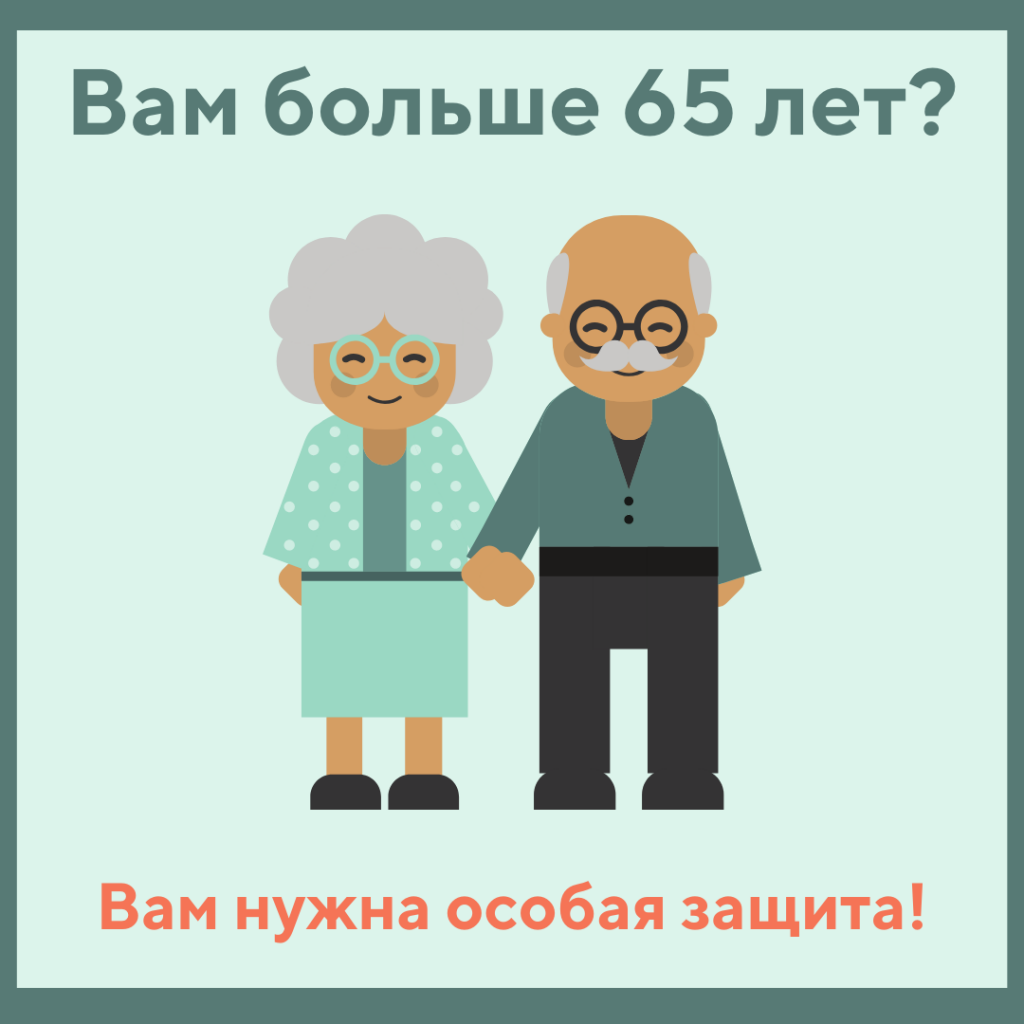 Люди «серебряного возраста» старше 60 лет в группе особого риска. Именно у пожилых из-за нагрузки на иммунную систему возможны осложнения, в том числе такие опасные как вирусная пневмония. Эти осложнения могут привести к самым печальным исходам. Важно сохранить Ваше здоровье!