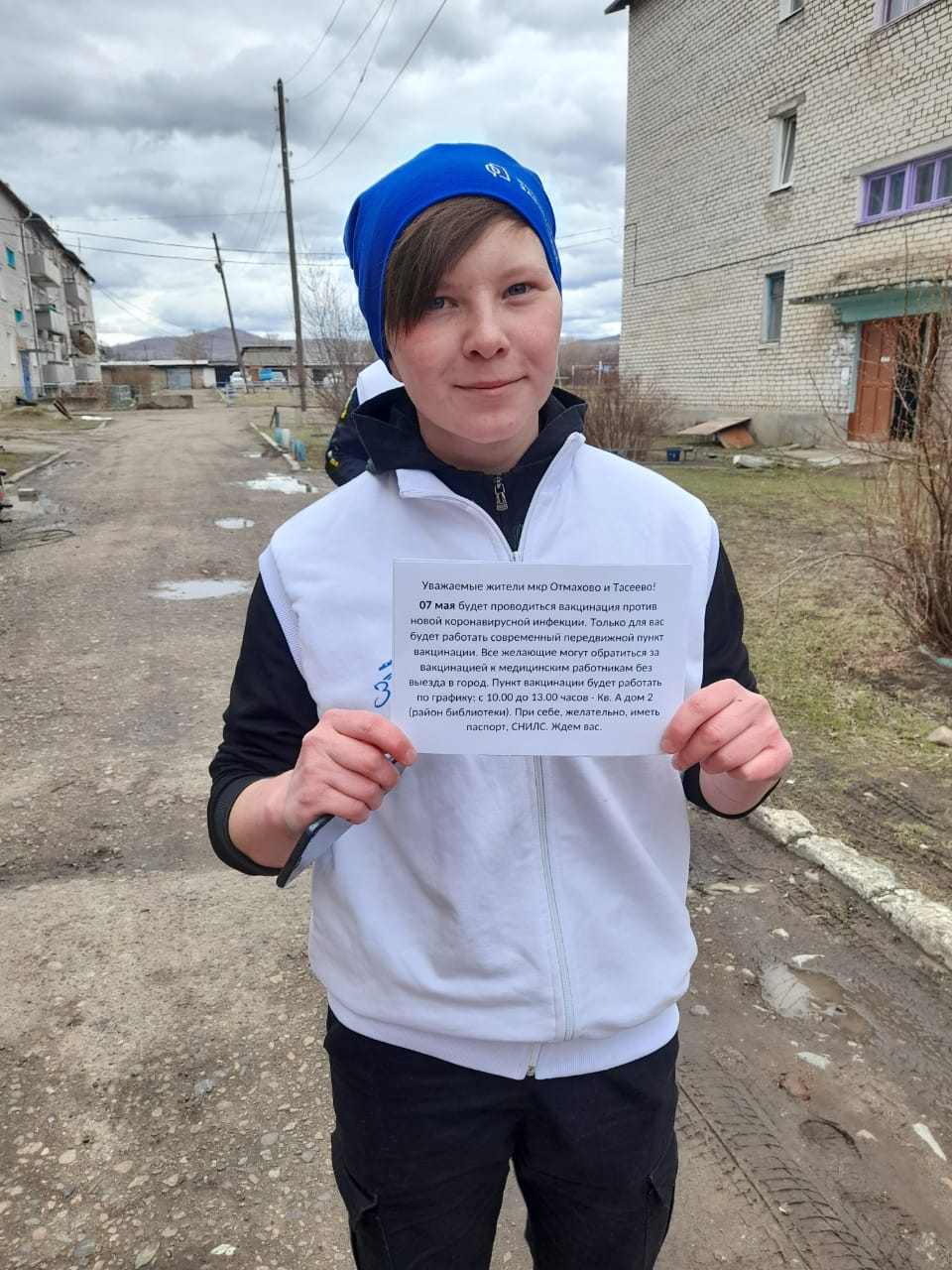 В рамках информационной кампании волонтеры распространяют раздаточный материал о работе передвижного пункта вакцинации против новой коронавирусной инфекции, а также проводят разъяснительную работу о необходимости вакцинации.