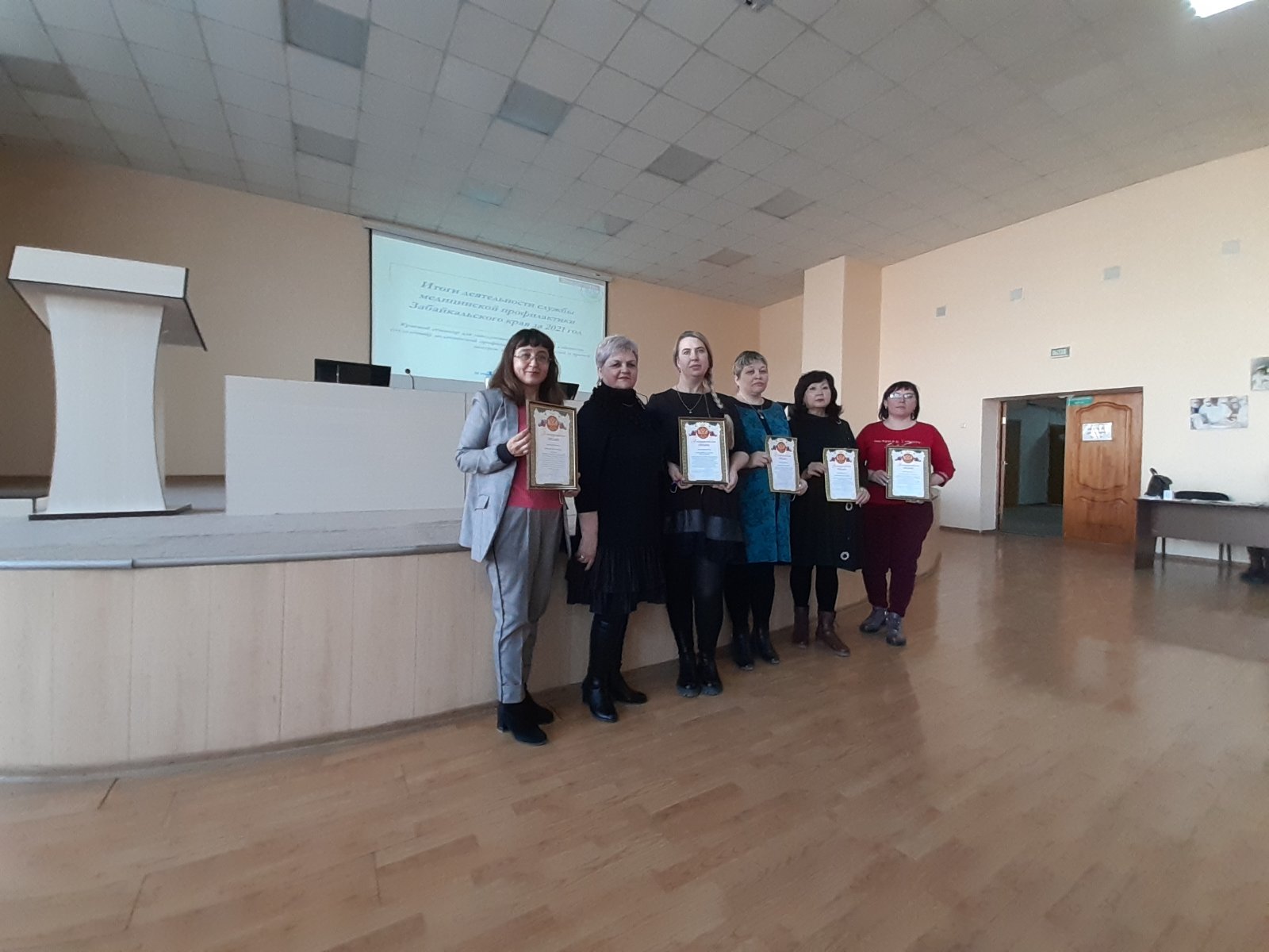 В актовом зале краевой клинической больницы главный внештатный специалист Министерства здравоохранения Забайкальского края Марина Загирова вручила 25 благодарственных писем и.о министра здравоохранения Оксаны Немакиной лучшим специалистам службы и руководителям медицинских организаций за профессиональный подход в организации основных направлений профилактической работы и высокие показатели работы службы медицинской профилактики. По итогам 2021 года отмечены Клинический медицинский центр г. Читы, Краевая клиническая инфекционная больница, Забайкальский краевой перинатальный центр, Краевой кожно-венерологический диспансер, Краевая больница №4, Краевая больница №3, Агинская окружная больница, Александрово-Заводская, Борзинская, Могойтуйская, Калганская, Карымская, Кыринская, Каларская, Петровск-Забайкальская, Ононская, Шилкинская и Шелопугинская центральные районные больницы.